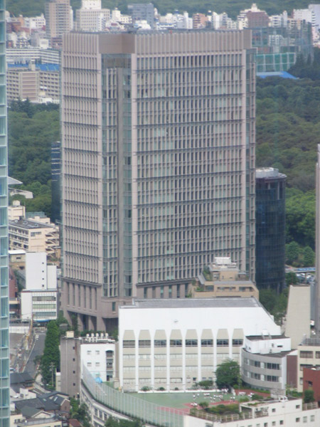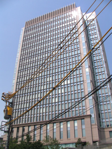 青山通りの近く、薬研坂のそばに立つ高層ビル。106m、20階建て。