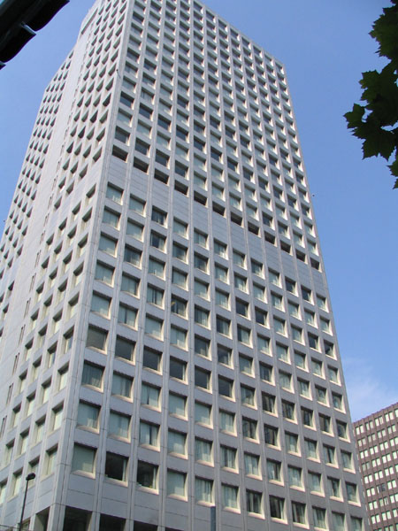 1971年竣工なので、デザイン的には当時の没個性さが表れてます。今の派手なビルの中ではむしろ個性的かも。