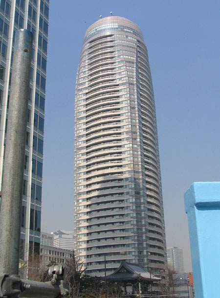 愛宕山のふもと、愛宕グリーンヒルズツインタワーの丸い方が愛宕フォレストタワー。157.21m、42階建て。