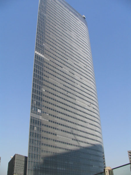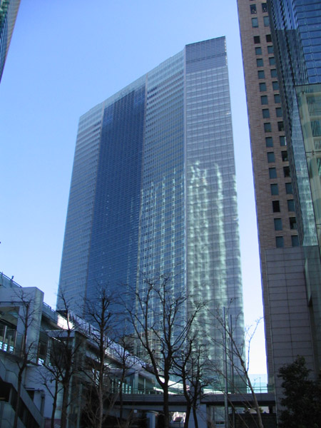 汐留再開発地区の北東側。微妙なカーブを描いている超高層ビルです。213.337m、48階建てと高さもなかなかのもの。