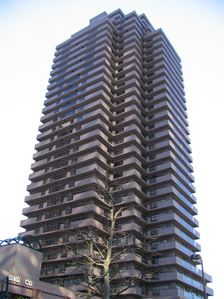 恵比寿ガーデンプレイスの敷地に隣接して建つ高層マンション。32階建て、108m。