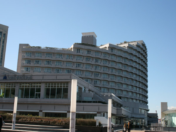 お台場の台場駅そばにある代表的なホテル。カーブを描いたバルコニーデザインがリゾートホテルらしい。