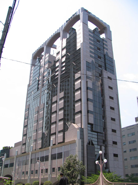 新芝運河沿いに立つ独特のデザインのビル。ジャパンタイムズが入っています。