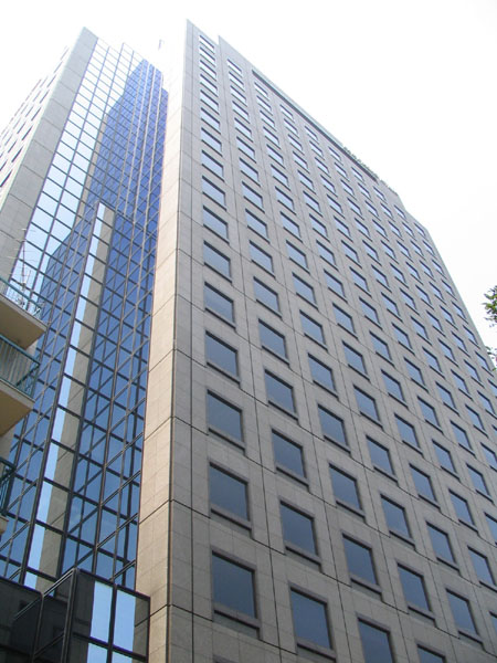城山ヒルズと神谷町駅に挟まれた場所に建つ20階建てのオフィスビル。