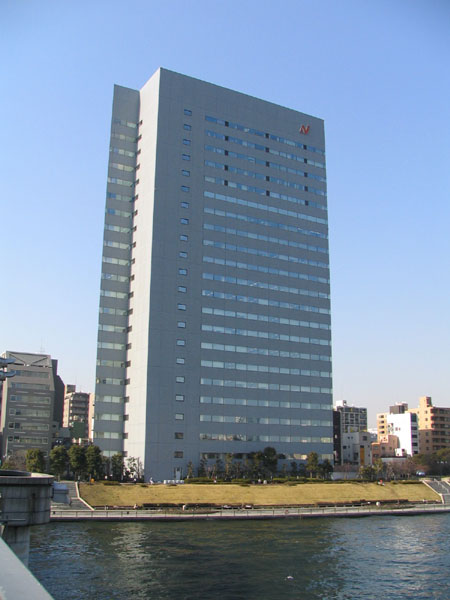 隅田河畔、勝どき橋そばに立つのがニチレイ東銀座ビル。ニチレイ本社です。