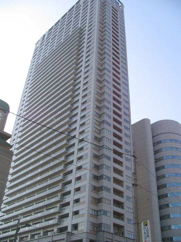 イヌイカチドキビルの後ろに立つ43階建て、155.25mの超高層マンション。