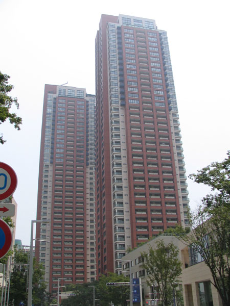 六本木ヒルズ森タワーの脇に立つ高層賃貸マンション。B棟・C棟ともに同じ高さ。