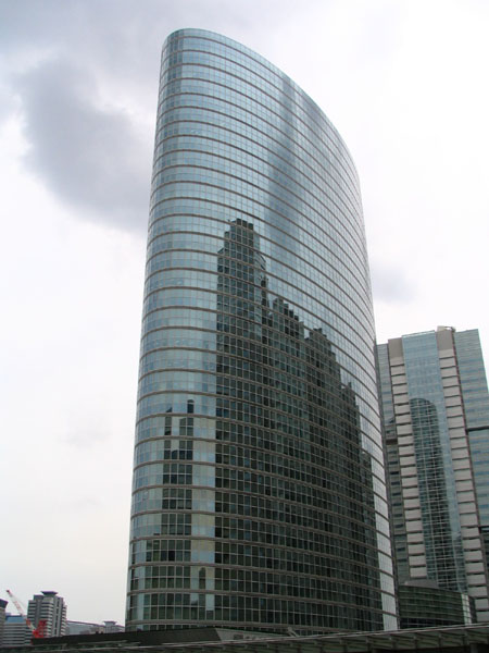 インターシティの入り口に立つ丸いビル。144.5m、32階建て。