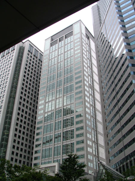 ビル群の間に挟まれてこぢんまりとした感のある高層ビル。150m、30階建て。