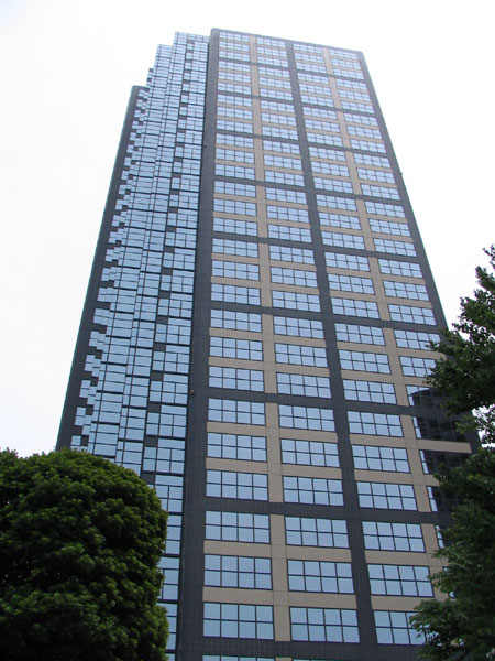 独特の窓枠模様のビルです。123.4m、31階建て。