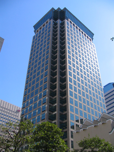 天王洲アイルのビル群の一つ。28階建て、117.5m。上の方が独特です。
