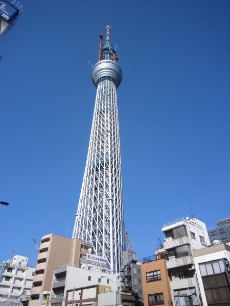 完成前から話題の超高層通信塔スカイツリーです。完成すれば高さは634m、電波塔では世界一になる予定。