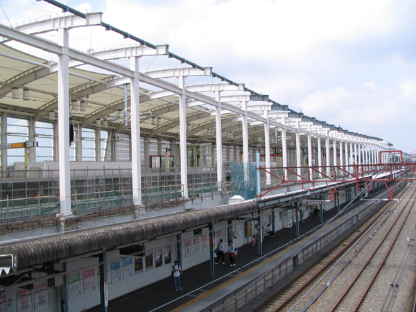 駅舎は橋上駅舎で、高架化に伴う大規模な工事中。