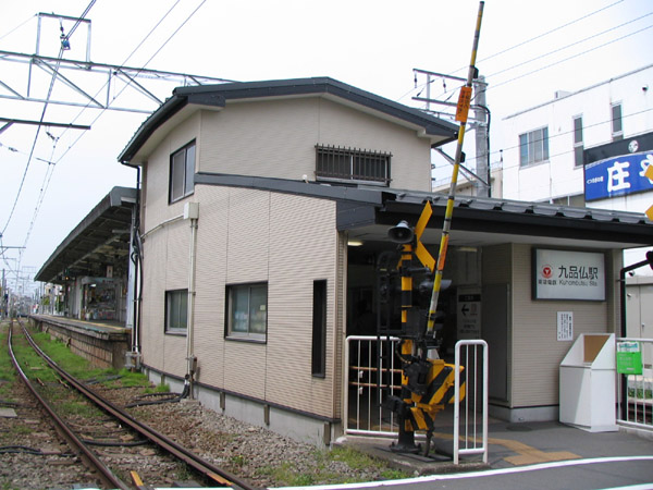駅名は、九品山浄真寺が近くにあり、そこの9体の阿弥陀如来像が有名なため。