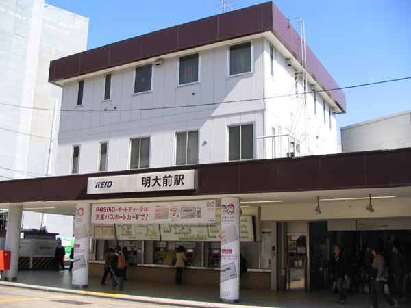 | 周辺は住宅やマンションが立ち並ぶ住宅地。北西に明治大学のキャンパスがあるが、これが明大前の由来。 他にも周辺には小中高多数がある学生・生徒の町。 |