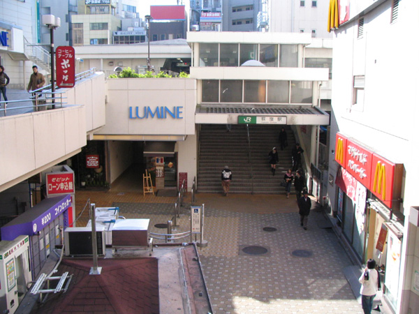 | 駅舎そのものは簡素だが、駅ビルが隣接していて、ルミネが入っている。 北口付近は立体的に建て込んでおり、西口は大通りに面して広々とし、南口は簡素と、特徴的に分かれている。 |