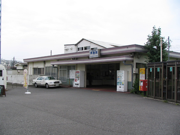 | 西武側の駅舎は、平べったい感じの駅舎。駅前はロータリーっぽい空間がある。 |