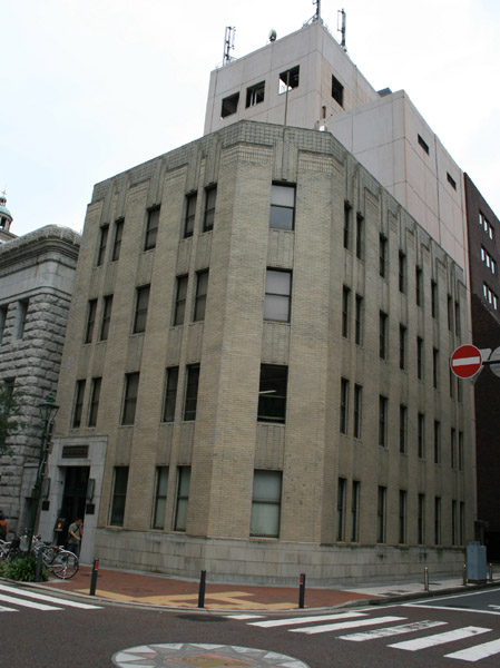県立歴史博物館正面の向かい側に立っている古いビルです。昭和11年建築。市の歴史的建築物に指定されています。