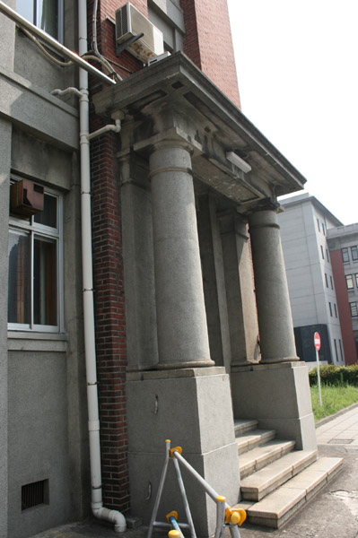| 玄関部分。レトロ調の丸柱が二本立ってます。 |