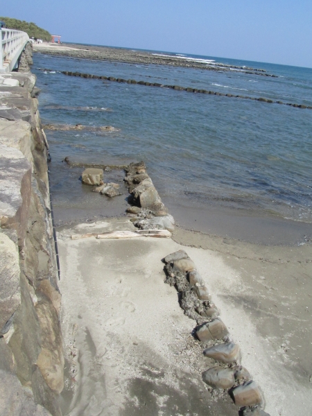 | 弥生橋の横に木と石の構造物のあとが見られます。橋の痕跡でしょうか。 |
