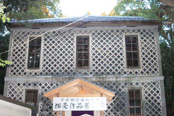 宮崎神宮の参道脇に立つナマコ壁の建物。徴古館です。