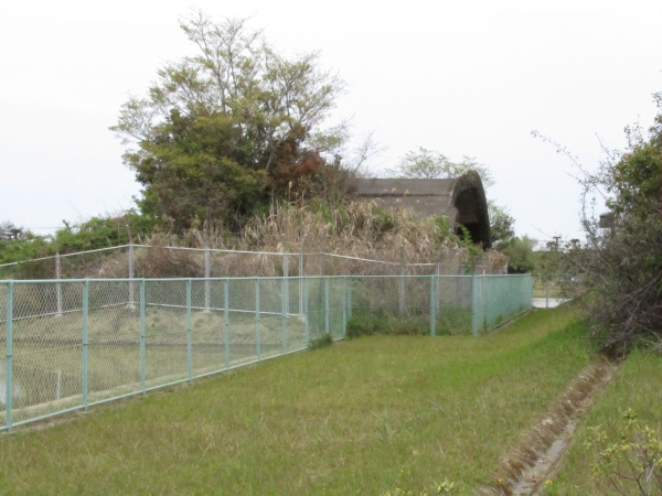 このそばには掩体壕ではないですがフェンスに囲まれた場所が複数あり、何かの跡かもしれません。