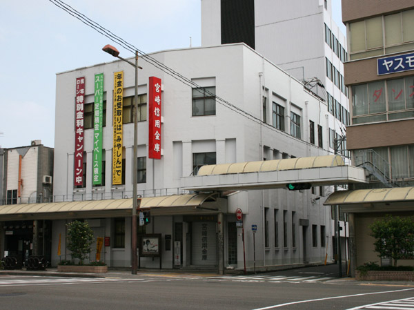 橘通2丁目。宮崎信用金庫本店の建物です。白くきれいに塗り直されてますが、建物自体は結構古そうです。