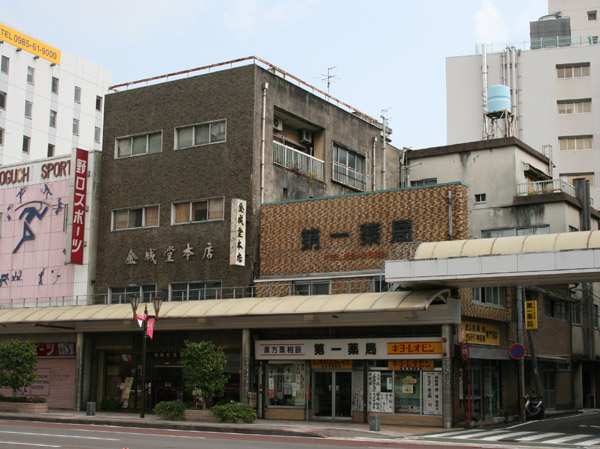 橘通2丁目東側付近です。金城堂本店は和菓子のお店。なかなか時代を経てきてますね。イイ感じ。