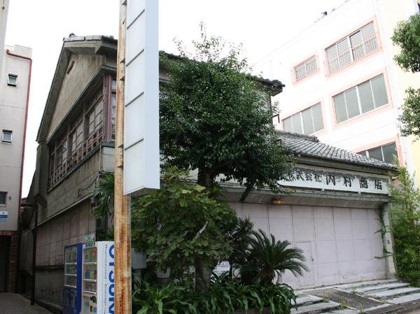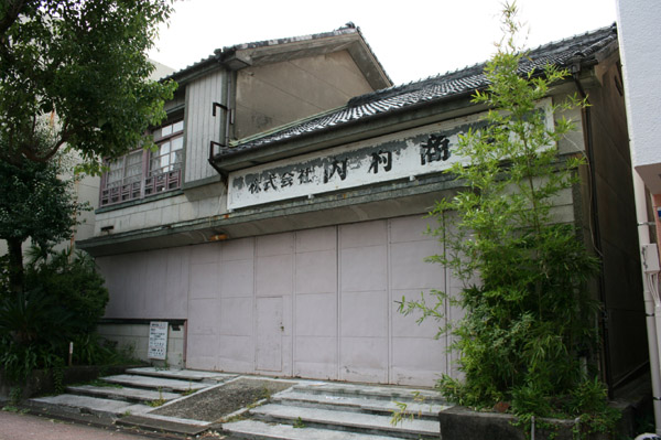 橘通西4丁目にある店舗。今は移転して空き家のようです。和風ですが、正面は段差を上がって倉庫のような扉がある変わった構造です。