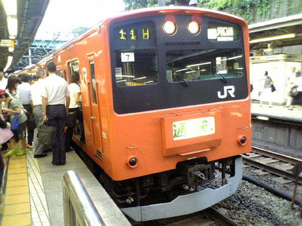 | 非常に久しぶりに見ましたが、201系の「通勤特快」。朝しか運行しない国分寺−新宿ノンストップの電車です。四ッ谷駅で。 |