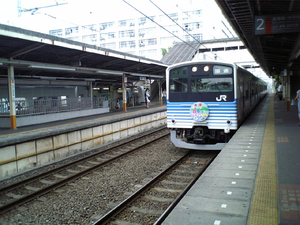 | 立川行きの青梅線4両編成。青梅駅で運行を分けたため、立川−青梅間で4両編成自体ほとんどなくなりましたが、その201系です。 |