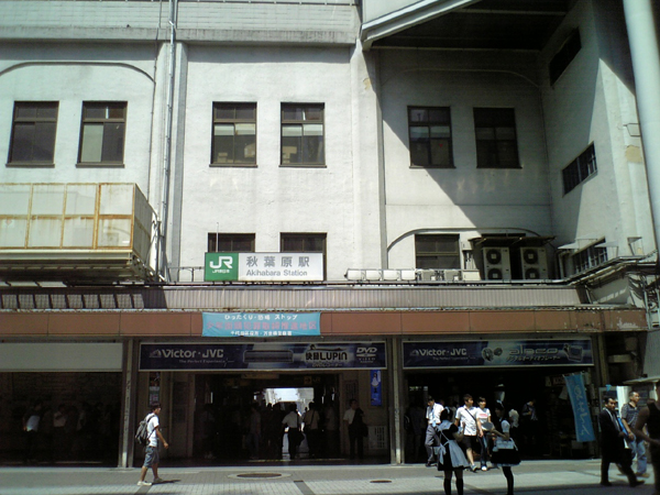 駅出入り口正面。メイドカフェのおねーさんが、ウチワとか配ってます。