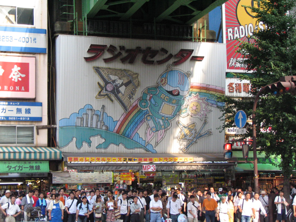 秋葉原の電気街側、高架下横断歩道の駅側正面にあるのがラジオセンターの看板。