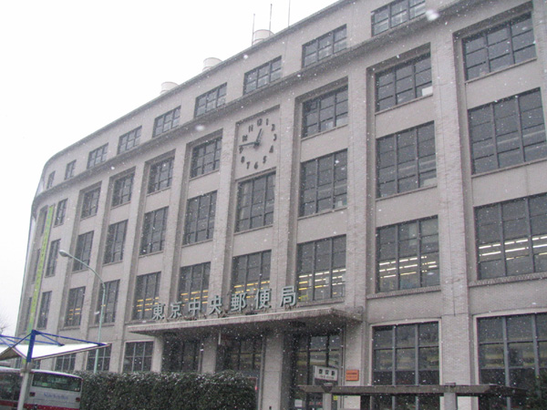 東京中央郵便局。東京駅前ロータリーの南側にある1931年完成の大きなビルです。