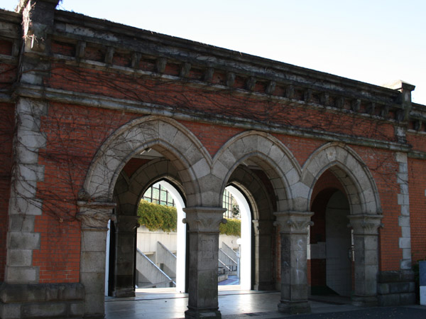 医学部の向かい側にある運動施設を囲む建物が、御殿山下記念館。立派な門です。