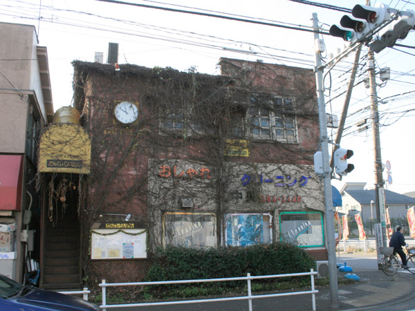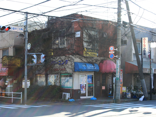 交差点角の商店。クリーニングと喫茶店でしょうか。