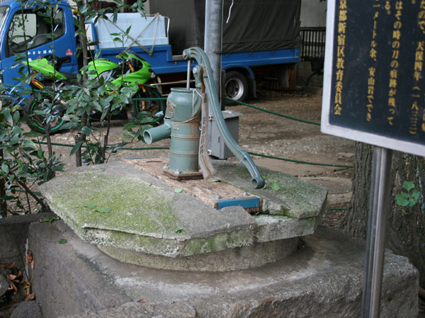 歌舞伎町にある稲荷鬼王神社。その境内にある手押しポンプの井戸です。使用は出来ないみたい。元は本格的な堀井戸のようです。