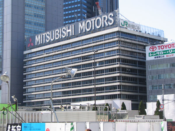 三菱モータースの看板も南口の有名なランドマークかも。隣はJR東日本本社。