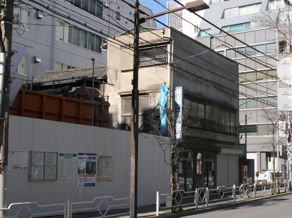 再開発が進む街角で見かけた印刷店。店舗の後方に住宅。かなり大きな建物です。