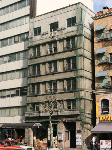 築地本願寺や築地市場に近い築地4丁目交差点のそばに、一つだけ非常に古い特徴的なビルがあります。
