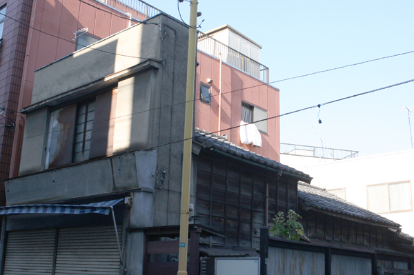 使われていない商店のようですが、表の看板構造と、裏の住宅部分がすごくよくわかります。