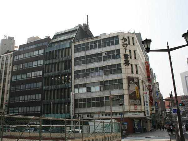 日本橋三越の向かい、高度成長期風の雑居ビル。刃物の木屋のビルで、タロー書房もあります。