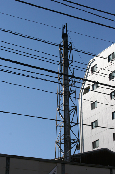煙突。普通は煙突そのままですが、これは支えやぐら付きです。