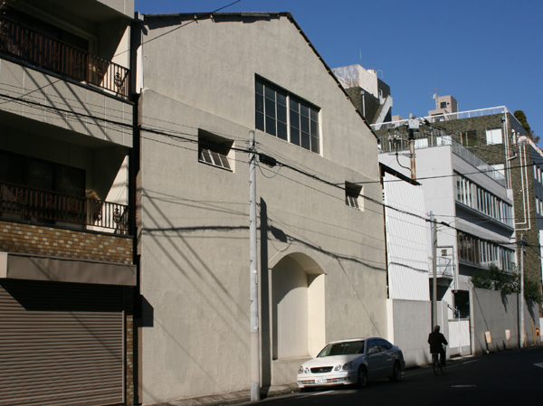 倉庫風な建物。綺麗に塗りなおされてますが、古い感じがします。