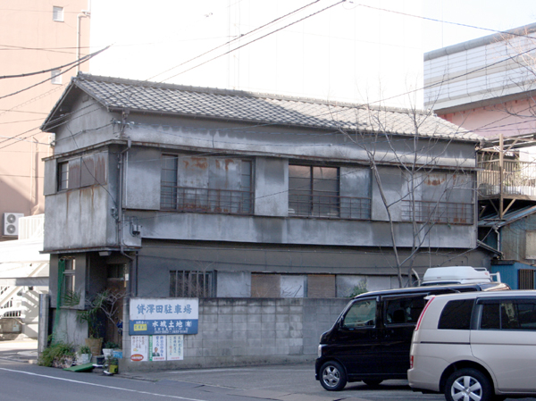 墨田区にて。昔風の共同住宅のような横長の建物です。下町でもだいぶ少なくなりました。