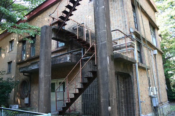 建物の反対側はタイル壁ではなくコンクリート。少しだけ新しい感じ。増設部分でしょうか。