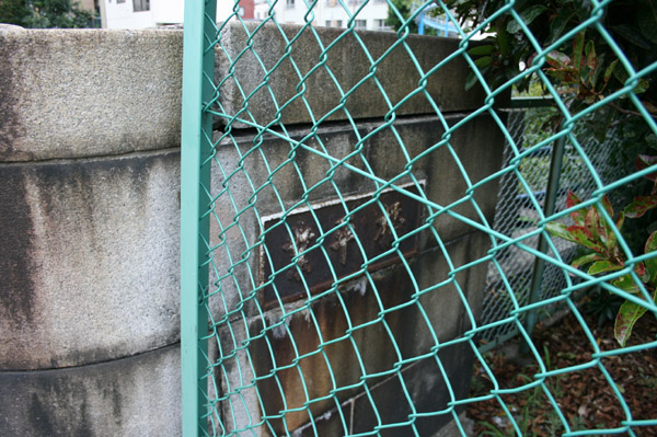 フェンスに隠れてしまった銘板。哀しいです。