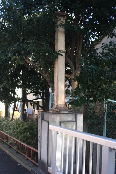 親柱の一つ。灯りの支柱が残っています。