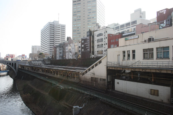 神田川とその河岸壁との間の狭いところに駅があるため、建て直しがしにくいために現在まで残っているそうです。