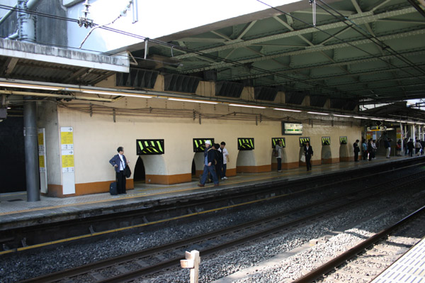 特徴的な跨線橋。すぐ下が神田川で、駅の後ろも壁になっている。